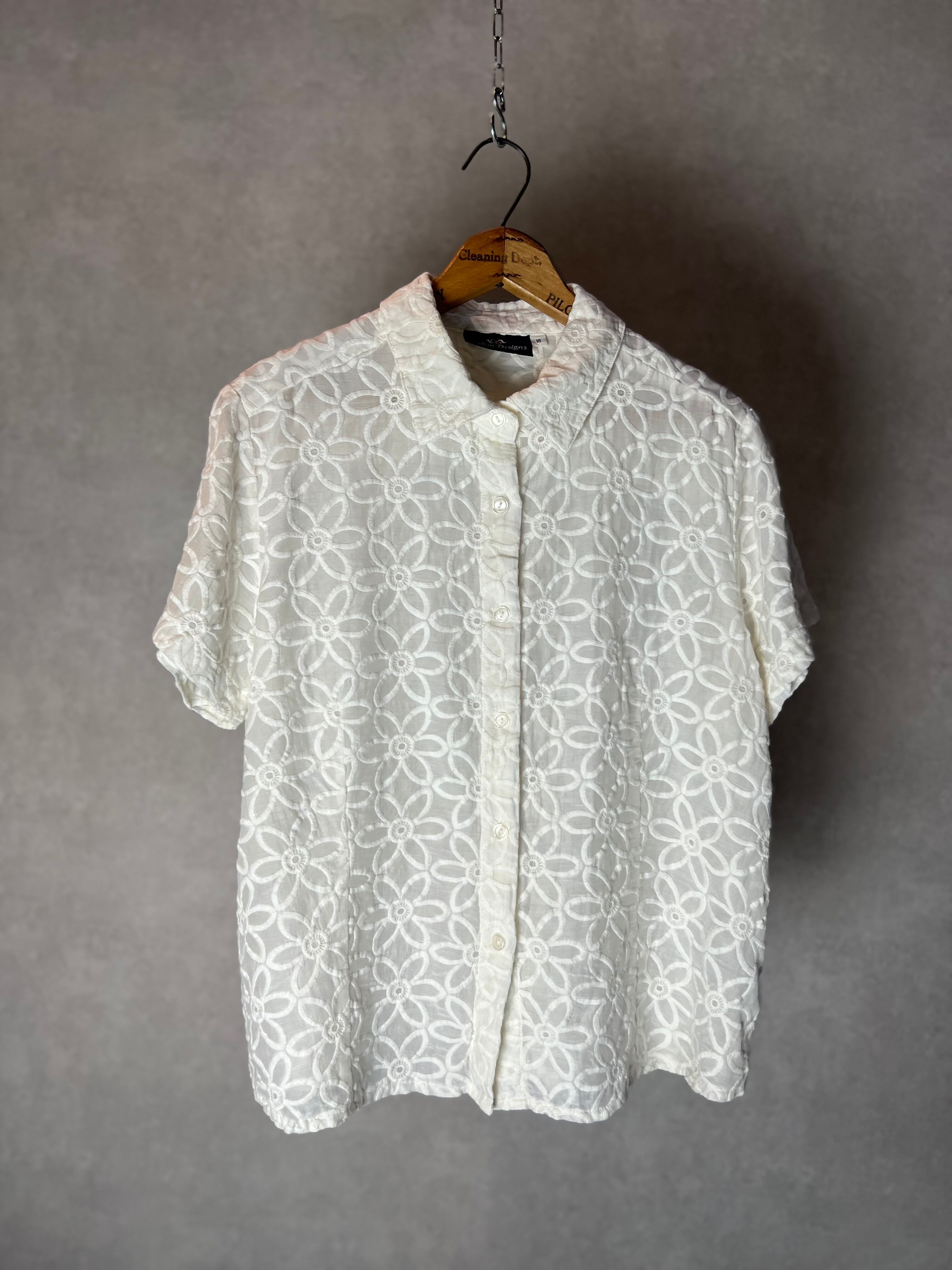 白の花シアーシャツ。