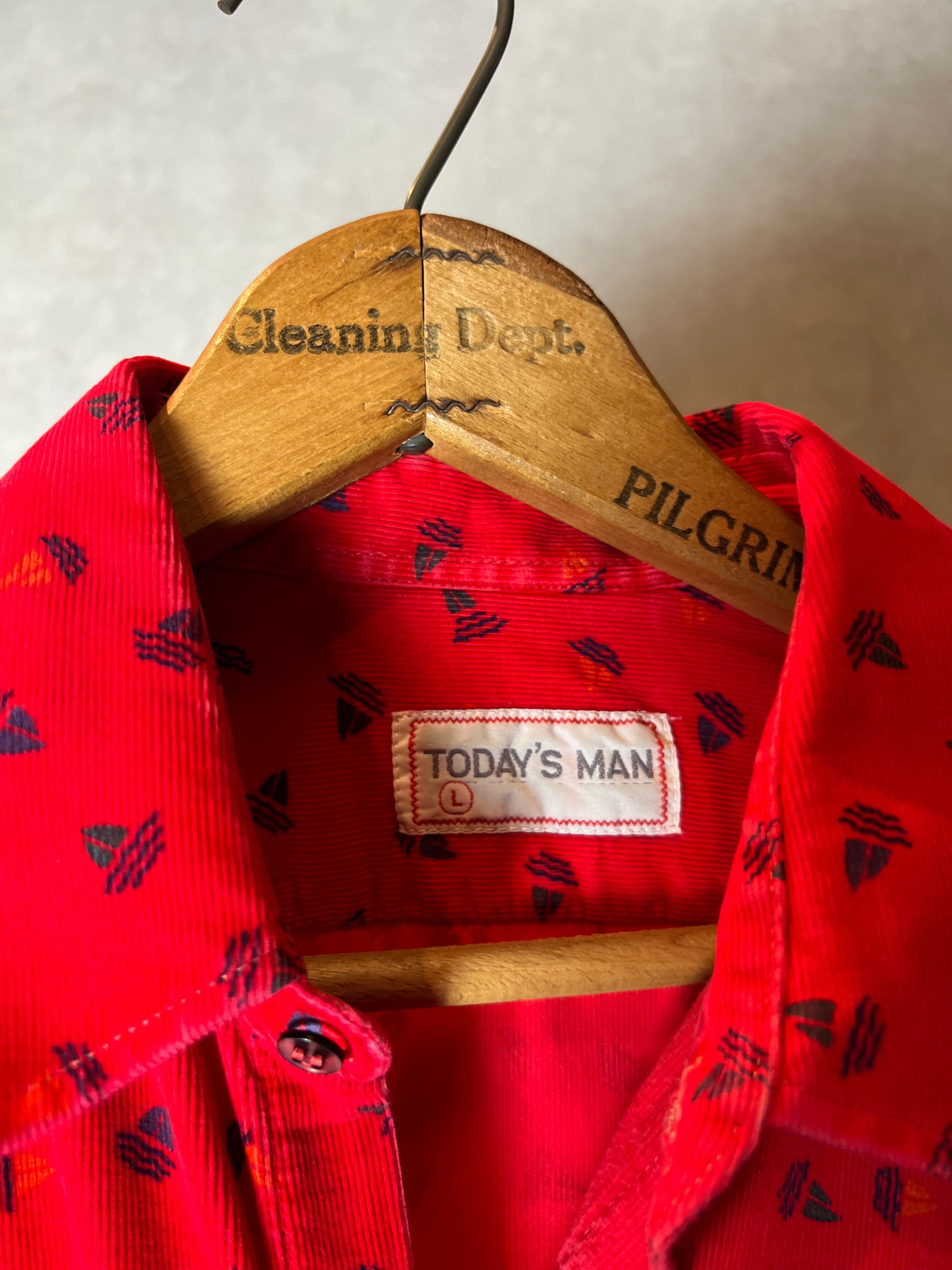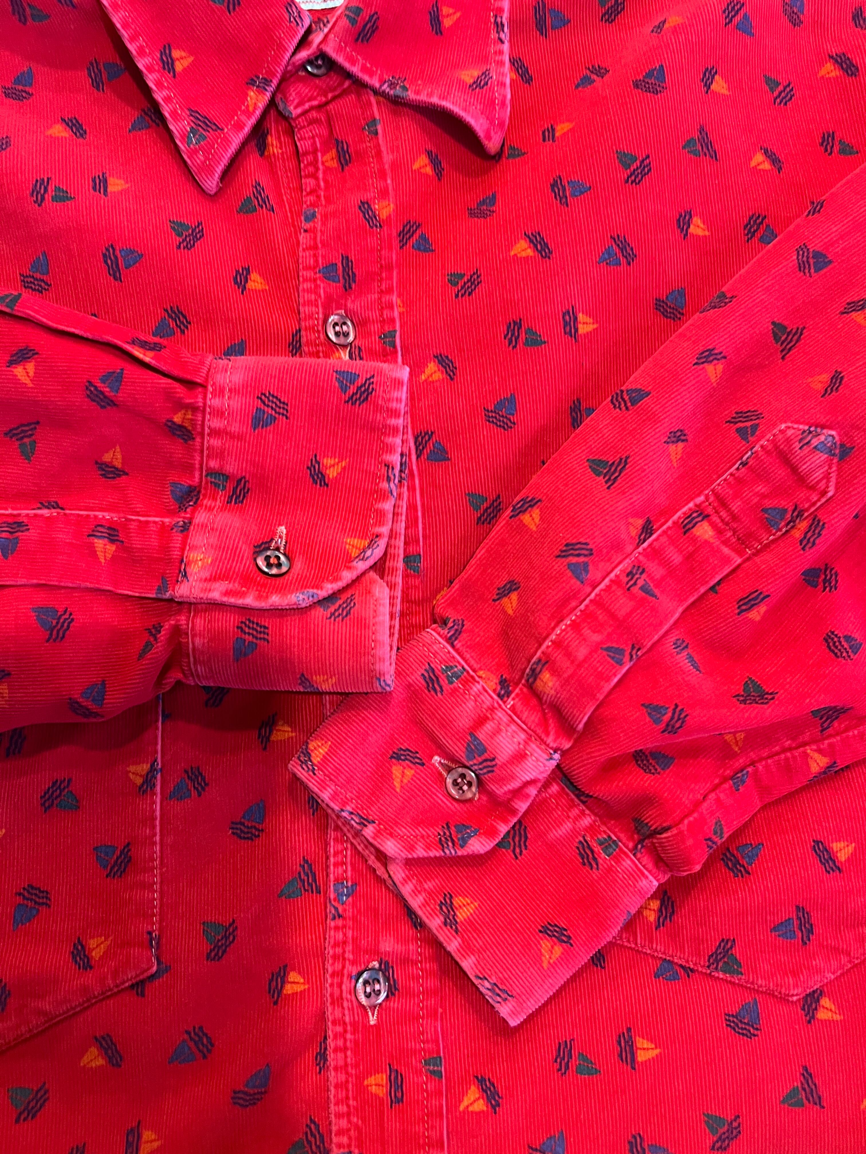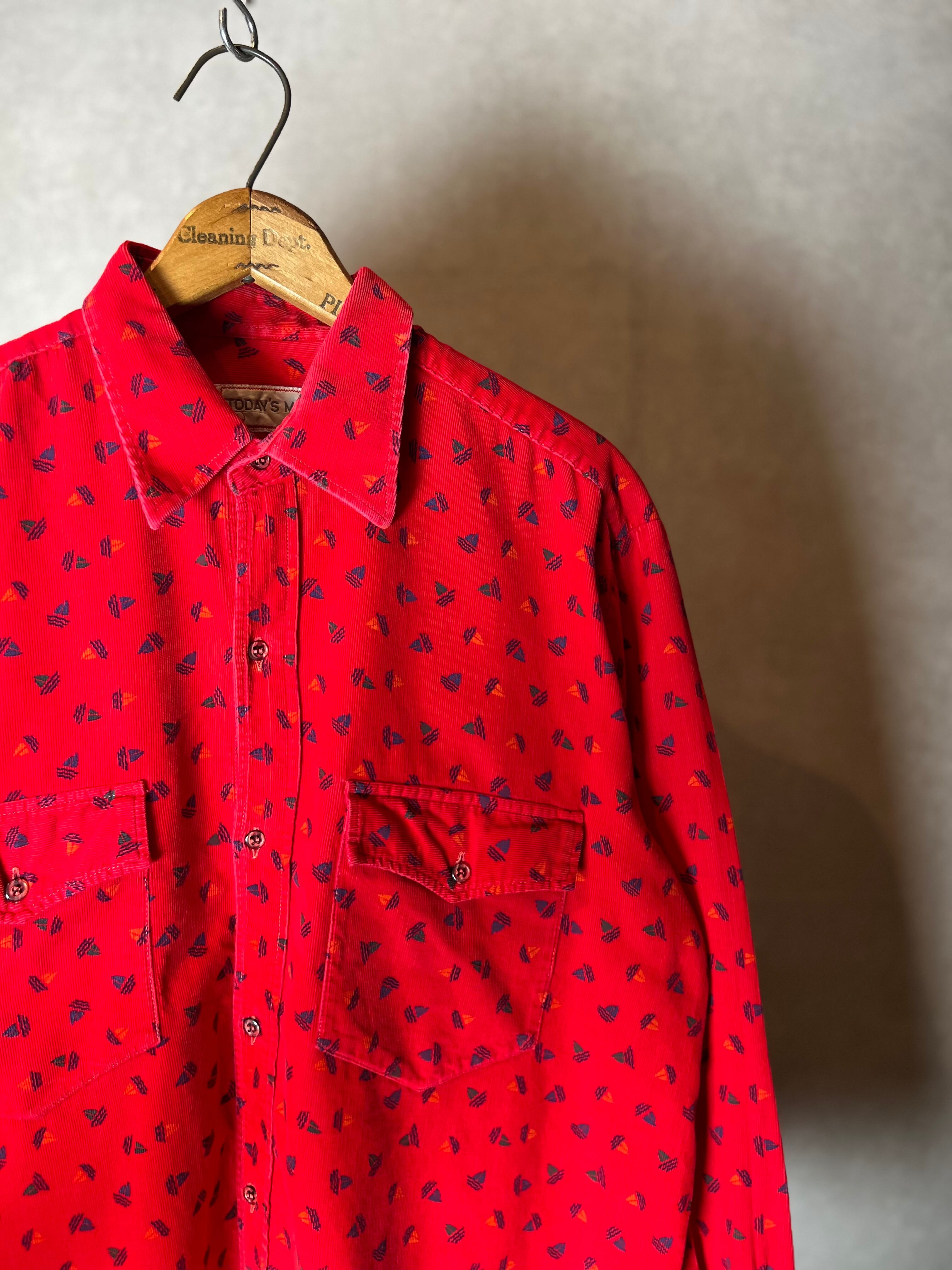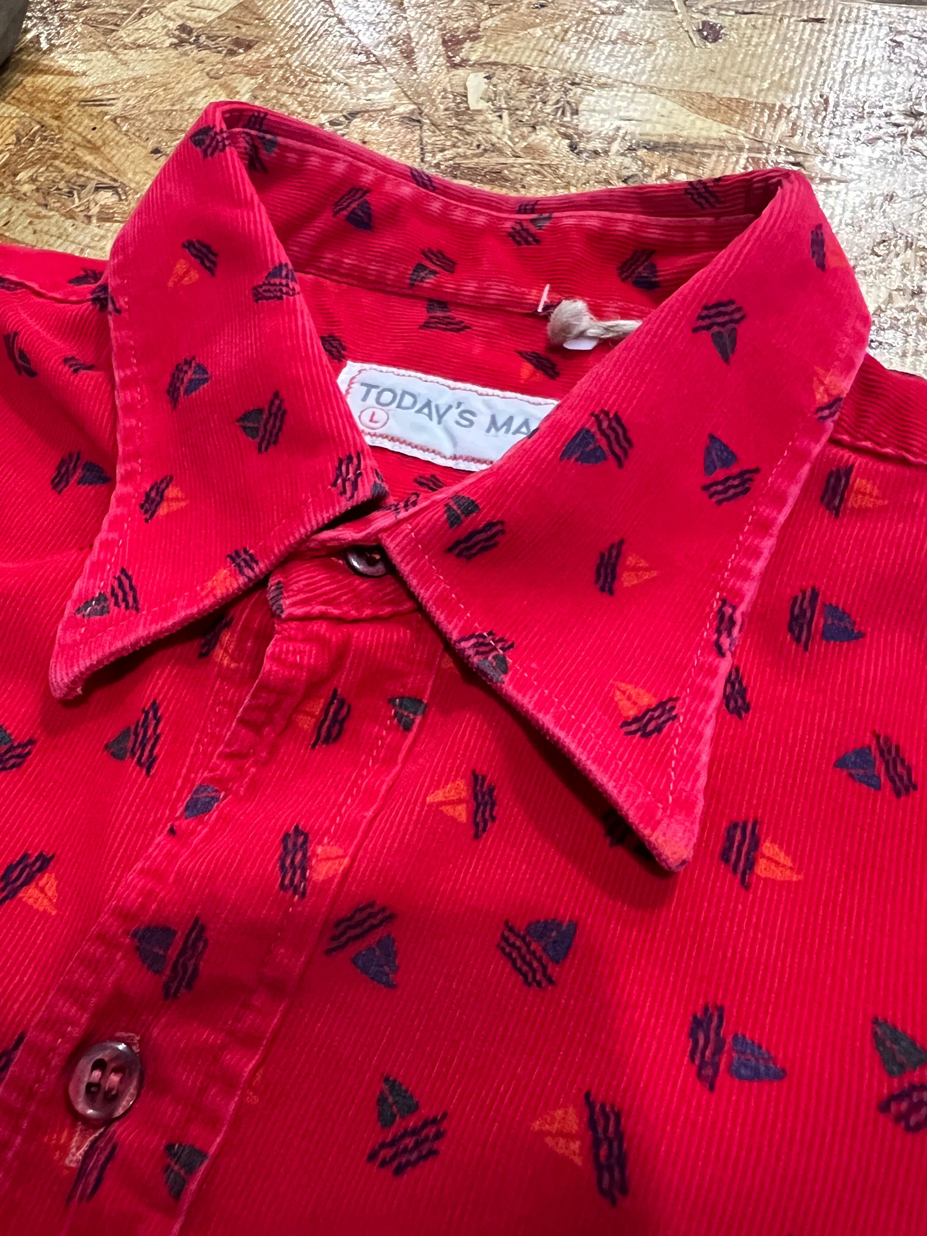 真っ赤なコーデュロイシャツです。