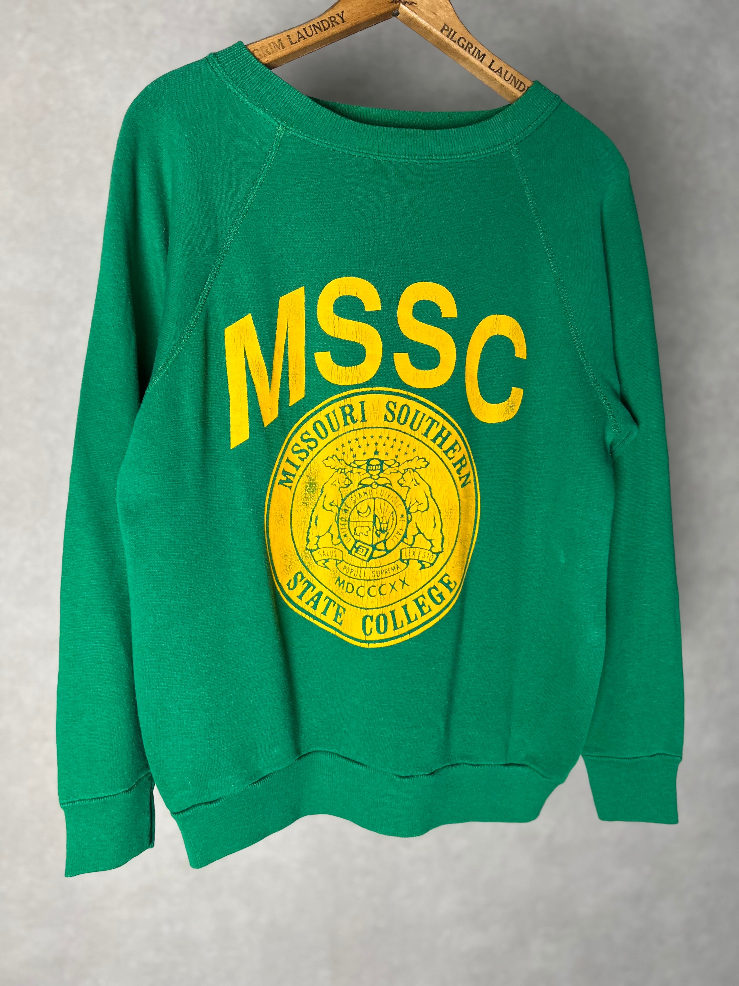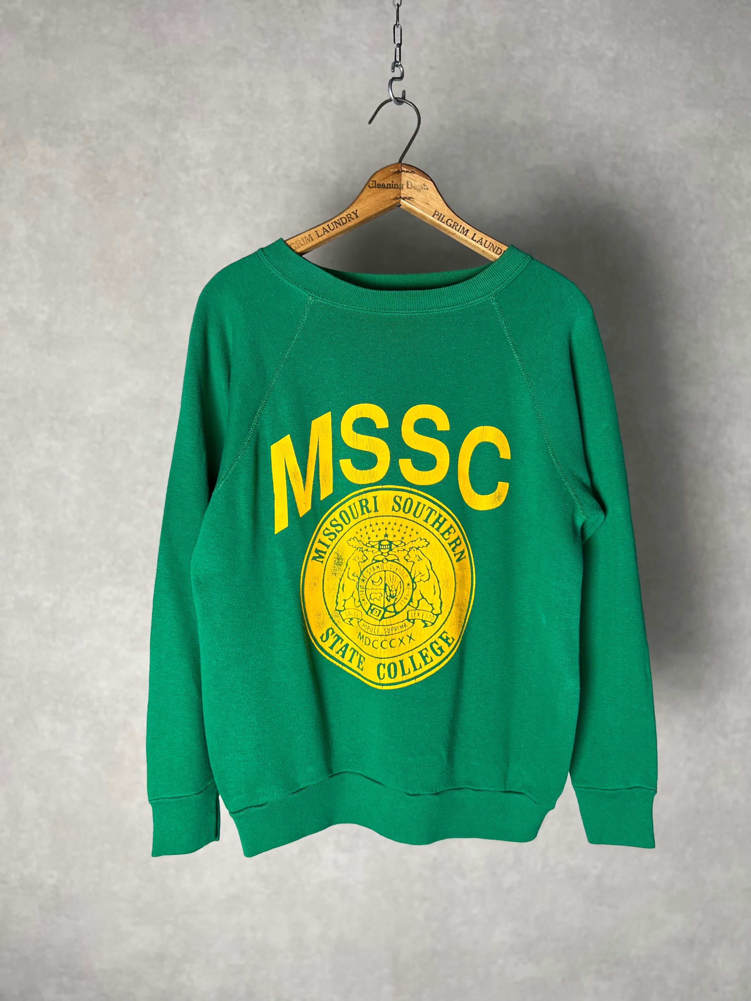 鮮やかなグリーンのスウェット。