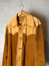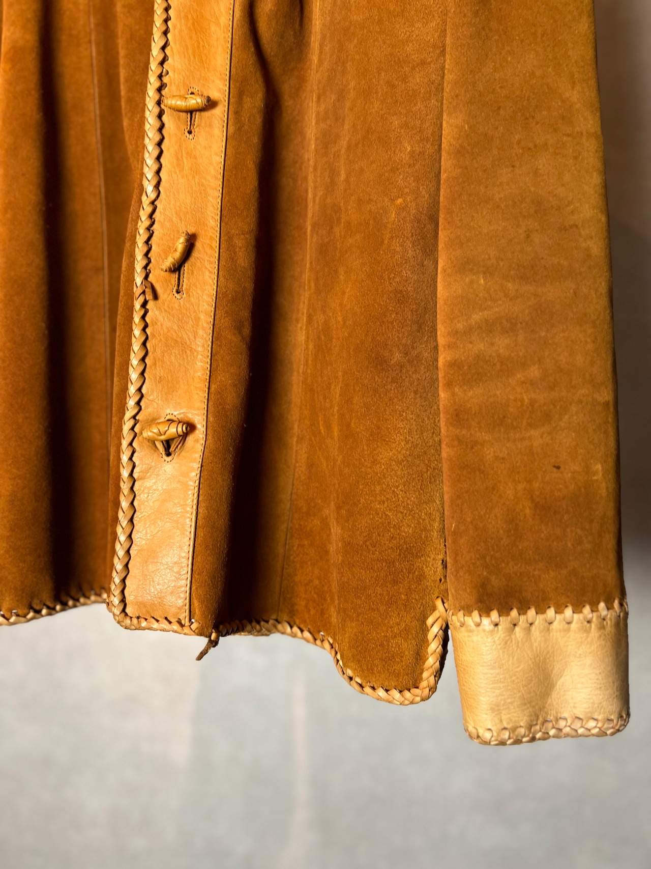 スウェードとの切り替え、編み込みデザインの逸品です。
