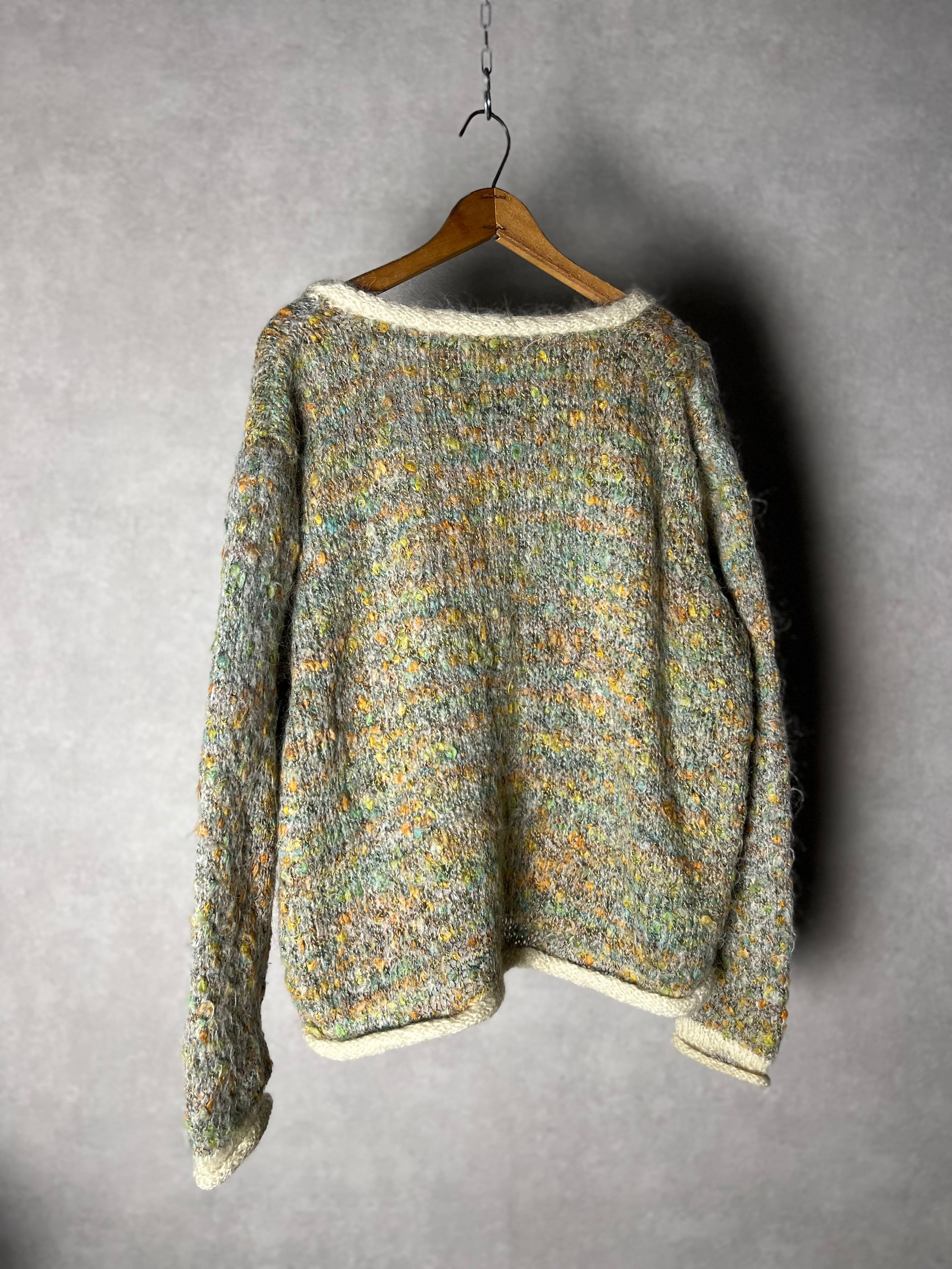 よく見るとカラフルな編み地の可愛いニットです。